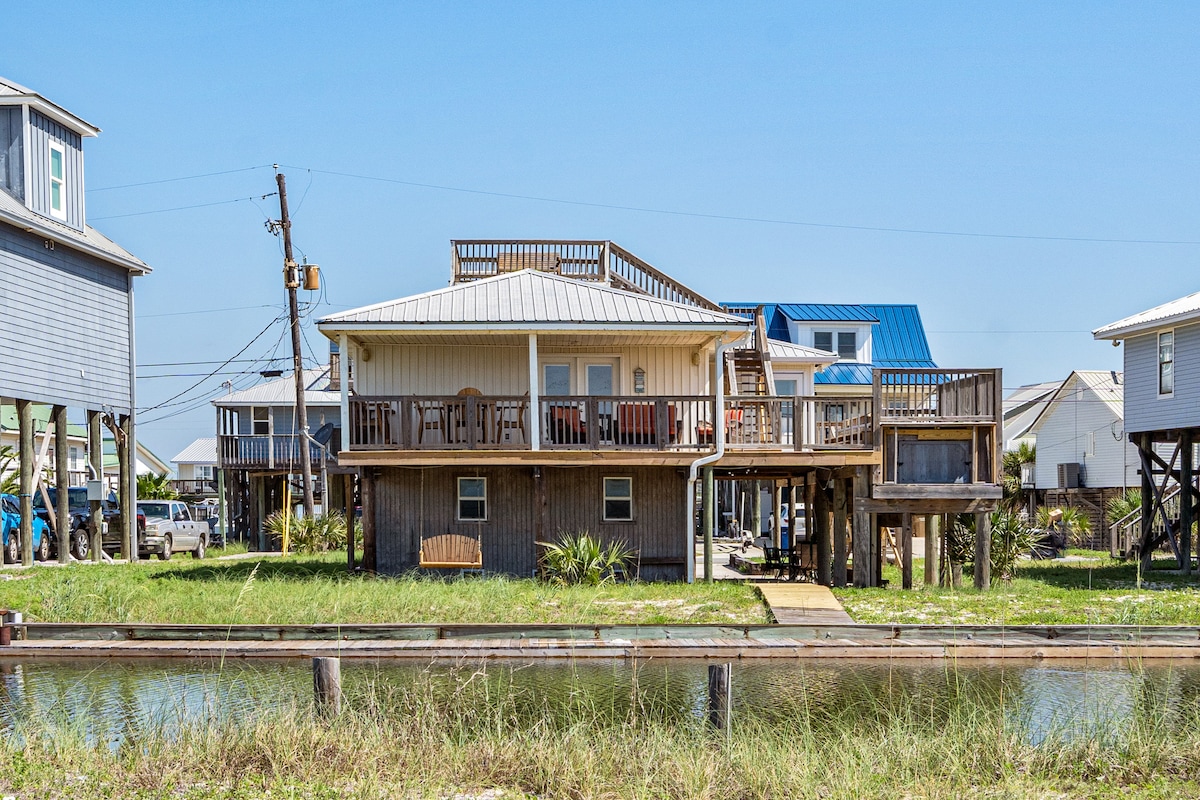 Pelican Watch is a 4-bedroom, 2-bathroom bayside waterfront beach house that has been updated throughout. The tastefully decorated home is unique and relaxing. The open floor plan has the living room, kitchen, and dining room overlooking the Mississippi Sound. The outdoor deck wraps around both the North and West side of the house with ample space for peaceful beach evenings. The bedrooms are spacious and comfortable with views of the Gulf of Mexico. This house is ideal for family vacations!