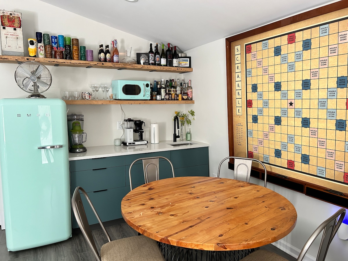 Weekly rentals encouraged. Brand new construction. Guests can expect a comfortable setting for two to watch internet connected 4 K TV with kitchen close for snacks. A quiet serene setting for reading as well. Provided books of interest to read that appeal to all tastes from spiritual, social, economics, satire, to fast page turning detective novels. I find when I travel a washer and dryer is a luxury I miss the most. To have entertainment while enjoying this often missed luxury task is a bonus.
