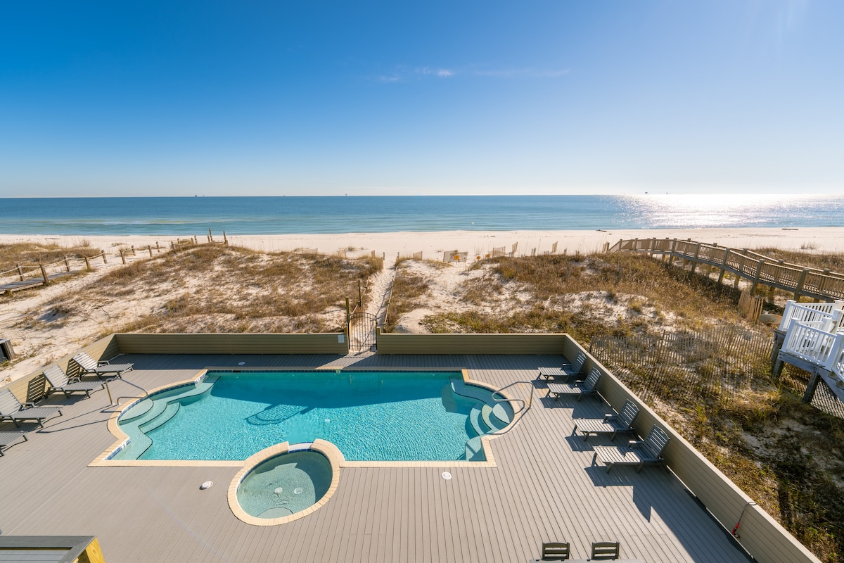 Beautiful, 4 level, 8 bedroom 6 1/2 bath oceanfront home in a gated community with a private heated pool. This 4700sqft home has very large bedrooms, private bathrooms, and generous closets (can fit pack n plays!). Elevator, grill, and much more! Family friendly, PET friendly, and we offer luxury services for food delivery, baby, beach necessities! Magnificent sugar sand beaches and ocean views every floor. F.B. page tracks all updates to home; search for "edenswaters". Will Price Match!