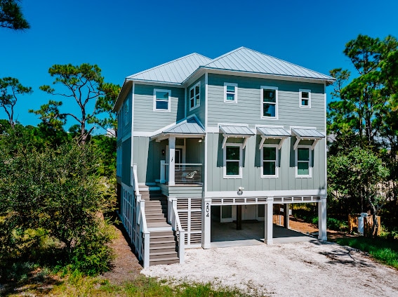 The Fox Den, with its unique design, is nestled amongst the trees of Dauphin Island, able to sleep up to 4 Adults. This little A-Frame is just minutes away from the white sand beaches & restaurants, making it an ideal coastal retreat. The house features a 3-person hot tub, allowing you to relax & unwind in style. The kitchen is equipped with modern amenities, Pots and pans and a Keurig coffee maker. It's a great place for preparing meals & enjoying that island vibe. The property has steep interi