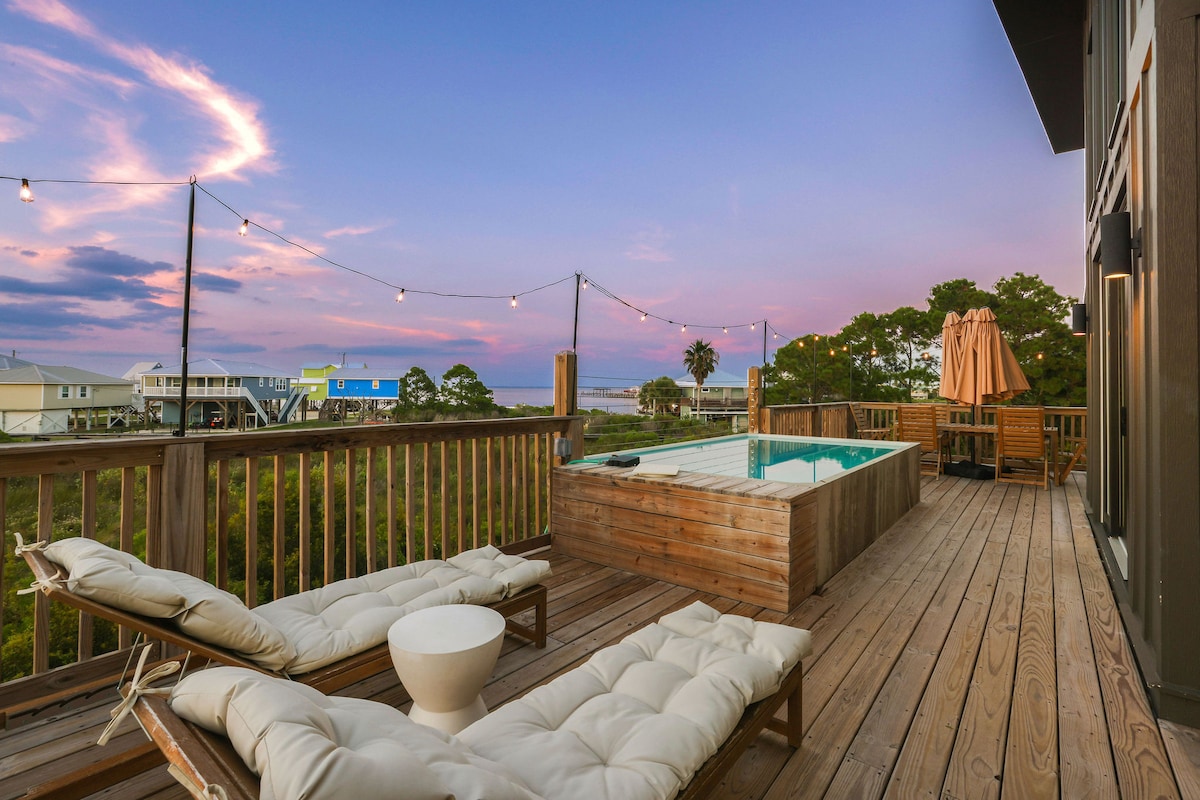 Your Private Island Escape Awaits! Ready to trade the noise for ocean breezes and barefoot days? Welcome to our 4BR/3BA home that has room for everyone to relax. Rinse off in the incredible outdoor shower, fire up the grill, and spend your days splashing in the custom-built pool—complete with a tanning ledge and a shallow play area perfect for little beach explorers! Movie night, but make it epic… Float under the stars and watch your favorite films on the mounted 65” TV—right from the pool.
