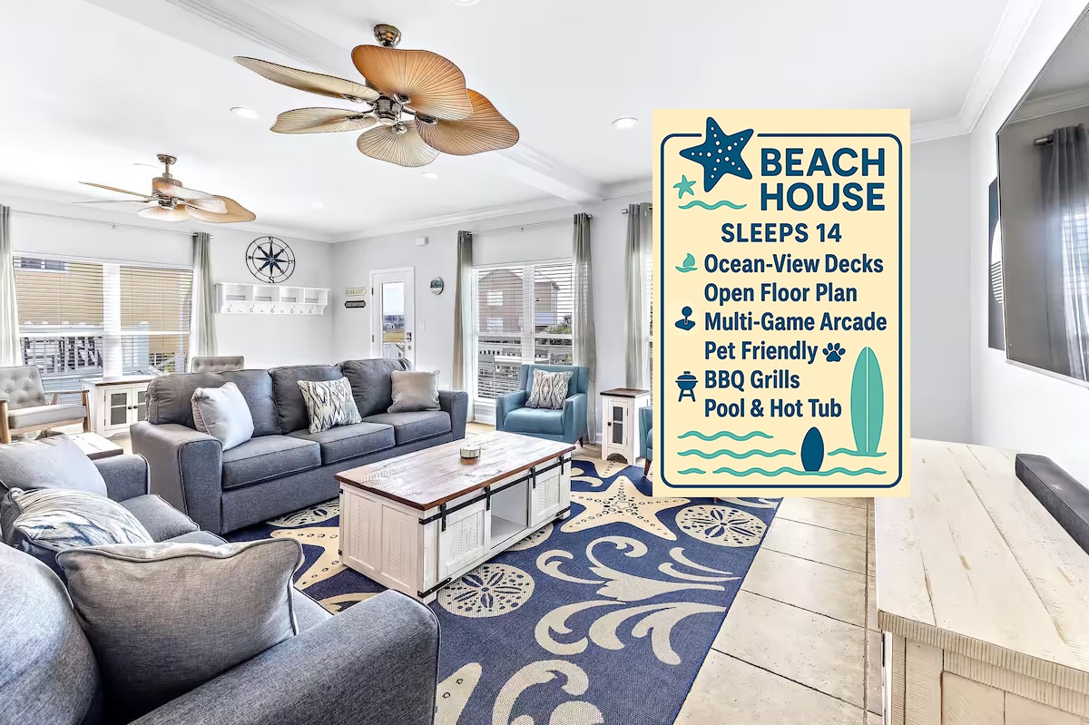 Beautiful, 4 level, 8 bedroom 6 1/2 bath oceanfront home in a gated community with a private heated pool. This 4700sqft home has very large bedrooms, private bathrooms, and generous closets (can fit pack n plays!). Elevator, grill, and much more! Family friendly, PET friendly, and we offer luxury services for food delivery, baby, beach necessities! Magnificent sugar sand beaches and ocean views every floor. F.B. page tracks all updates to home; search for "edenswaters". Will Price Match!