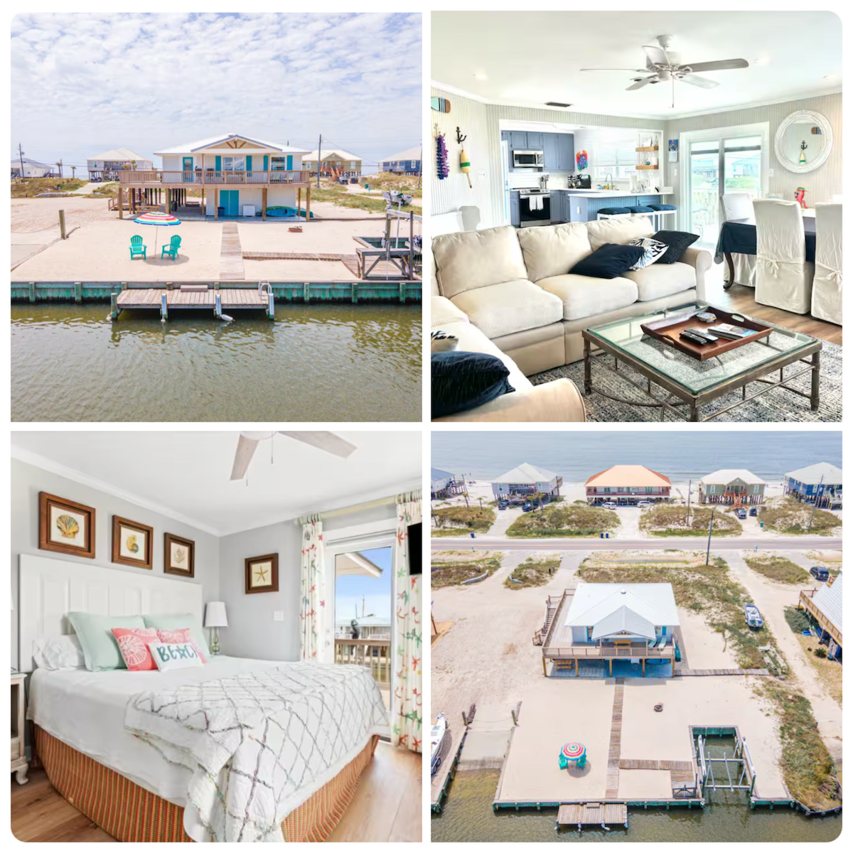 This charming cottage sits directly on the bay on Mon Louis Island and provides breathtaking views from most of the home! You will love the open floor plan and the huge island in the kitchen. Enjoy your morning coffee on the comfortable covered porch watching the sunrise over the bay, an afternoon grilling out, or an evening relaxing by the fire. The beautiful Dauphin Island beaches are just a 10 minute drive away and 30 minutes to historic Downtown Mobile! No ocean access from the property.