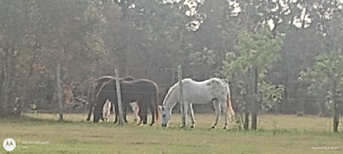 Reconnect with nature! Wake up to a beautiful sunrise and a field full of beautiful horses. Fall asleep listening to crickets and wake up to the birds singing ,quiet & peaceful country atmosphere and a cute and cozy clean camper just for two. Enjoy an evening or morningTrail ride. Lots of great local attractions. Minimum stay 2 nights for $400.00. Includes campfire and everything for s'mores