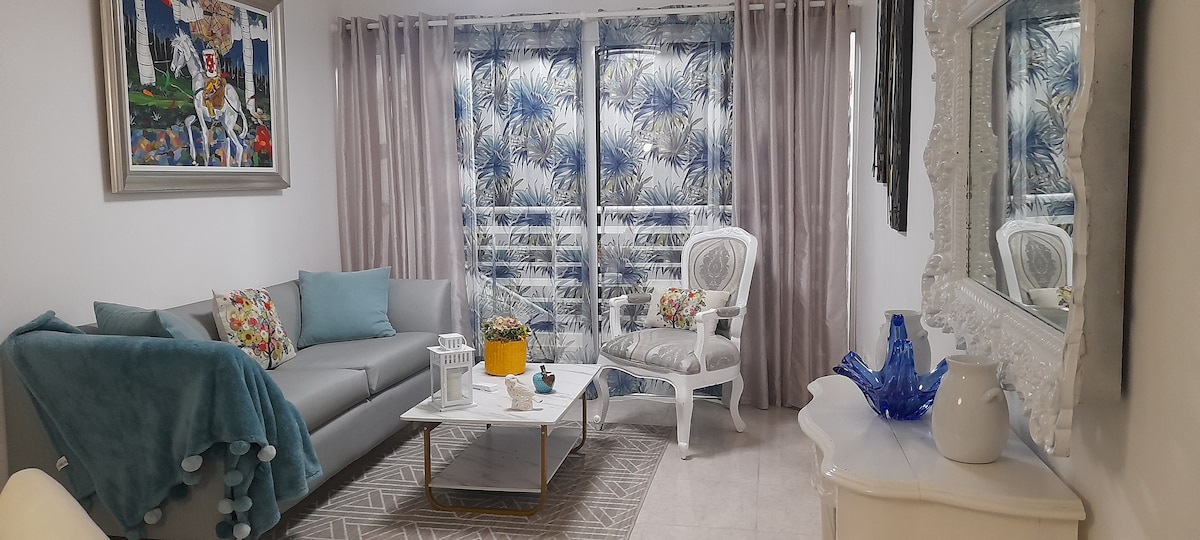 This is a beautiful exclusive suite on the 12th level of the tower with a panoramic view. The concept is modern and luxury . Led iluminated ceilings. Air conditioning in both the living room and bedroom offer a pleasant climate. A very comfortable bed for a good night sleep . 50 -Inch TVwith NETFLIX,WiFi,cable and other amenities are included. Located in one of the most prestigious and secure areas .Whether it’s a business trip or a relaxation vacation, this will be the perfect getaway.