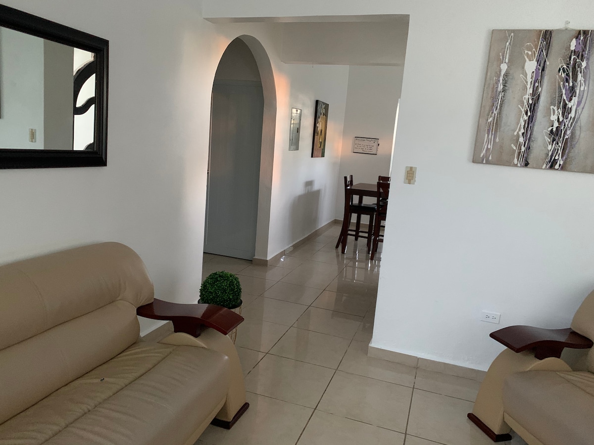 Residencia ideal para relajarse y disfrutar en familia. La propiedad incluye sala, comedor, 3 habitaciones con aire acondicionado, 2 baños, amplia cocina equipada y marquesina. Además incluye barbacoa, piscina, calentador y WiFi !! Se encuentra a minutos del aereopuerto, hospital, centros comerciales, farmacias, panaderías, comidas rápidas, restaurantes, playas y mucho más. Perfecto para disfrutar con familiares y amigos!
