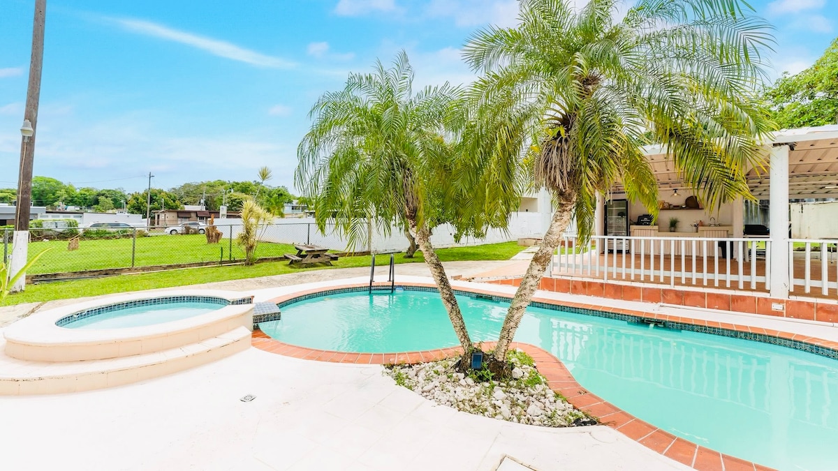 Bienvenidos a Airbnb CasaBonita! Espaciosa casa con tres cuartos y 2.5 Baños la casa es de 2 pisos perfecta para darte una escapada para el area oeste y pasar un momento agradable con tú familia y seres queridos. Cuenta con mini bar para compartir con la familia o amistades. Tiene en el cuarto principal un jacuzzi para relajarte o simplemente pasar un buen momento.