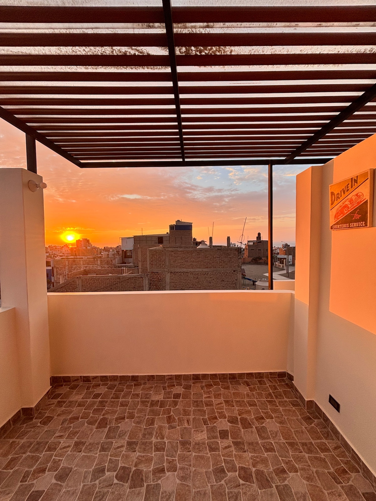 PRIVADO. cordinamos check in cualquier pregunta con gusto la contestare en EL Corazón de Huanchaco. a 3 cuadras mejor playa y media cuadra placita principal, puerta calle, ESTACIONAMIENTO EN LA CALLE WIFI el 1erpiso: un Patiecito de entrada, salita , mesa de trabajo y comedor para dos, el kitchen equipado. 2do piso: dormitorio cama Matrimonial, Baño Aguacaliente. amamos a las mascotas, es un departamento para Personas positivas con buenas vibras!! . A veces hay ruido en la calle.