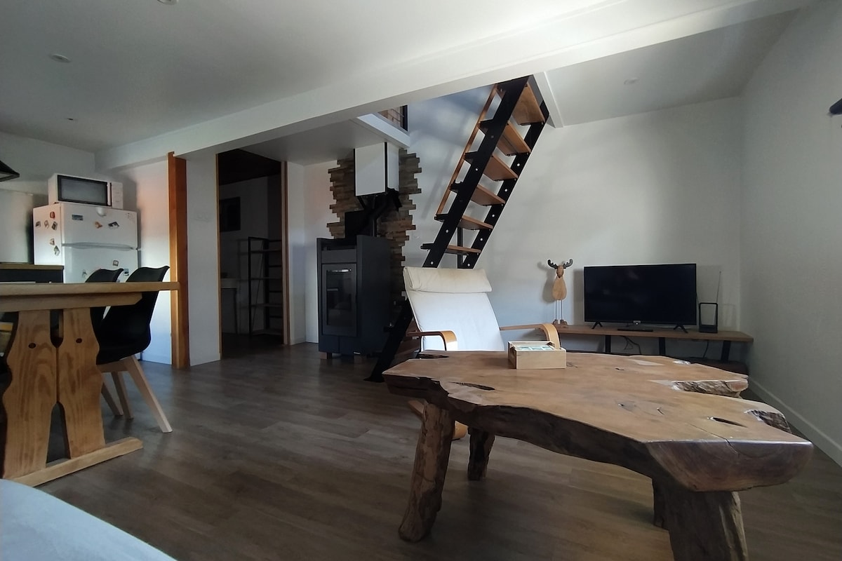 Venez vous ressourcer au calme et au centre village, dans un lumineux et spacieux appartement refait à neuf, entouré d'un grand jardin partagé, avec balcon, haut plafond et poutres apparentes, poêle à bois. Au 2e et dernier étage d'une maison ancienne et atypique, offrant de belles vues sur les montagnes et la forêt. Parking gratuit, Wifi, Netflix, draps/serviettes. Au coeur de Saint-Pierre, commerces, restaurants, randonnées sont à quelques minutes à pied.