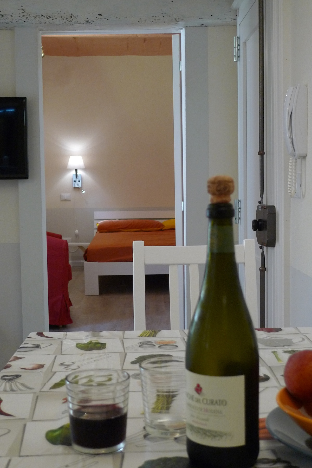 Delightful two-room apartment located in a historic building in the center of Modena, strategically located for walking to the historic center and the city's main attractions. Novi Park covered parking is located in front of the apartment, and the train and bus stations are less than a 10-minute walk away. Enjoy a fantastic view of the Ghirlandina Tower and the city rooftops. The peaceful and quiet atmosphere will make your stay unforgettable.