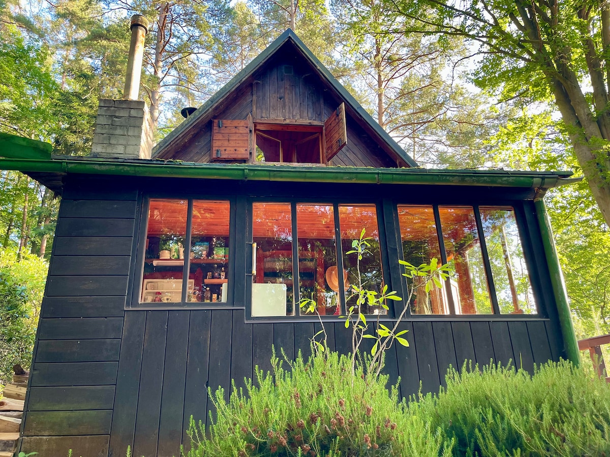 Escape to a tastefully renovated historical cabin. Warm up in the wood-fired sauna, then cool off in a natural pond. Enjoy the sound of the waterfall, forest, and nature all around. Relax by the window with a crackling fire. Luxury comforts include a Bowers & Wilkins sound system, a fully equipped kitchen upcycled from old wooden doors, and a bathroom with heated floors and a rain shower. Perfect for a romantic stay or remote work with a pull-out Dell monitor. Just 30 minutes from Prague.