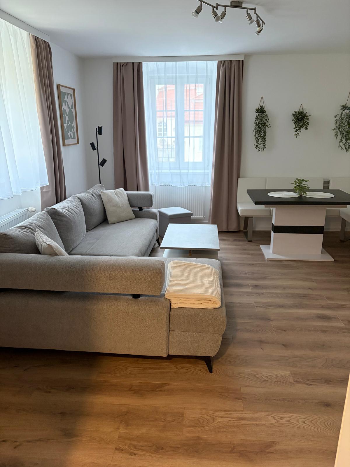 Helle 70 m2 Wohnung mit guter Verkehrsanbindung ( 15 Min.) zum Zentrum. Vermietet wird eine tolle Wohnung im 1. Stock mit Lift. die Küche ist mit den nötigen Geräten und Utensilien zur Selbstversorgung ausgestattet. Die Terrasse ist Hofseitig gelegen und hat einen Zugang vom Vorzimmer und Wohnzimmer. Das Wohnzimmer mit Kamin ladet zum netten Verweilen ein. Das Auto kann in der Garage im Hof geparkt werden. Laden des Elektrofahrzeugs gegen Gebühr an der Wallbox ist ebenfalls möglich.