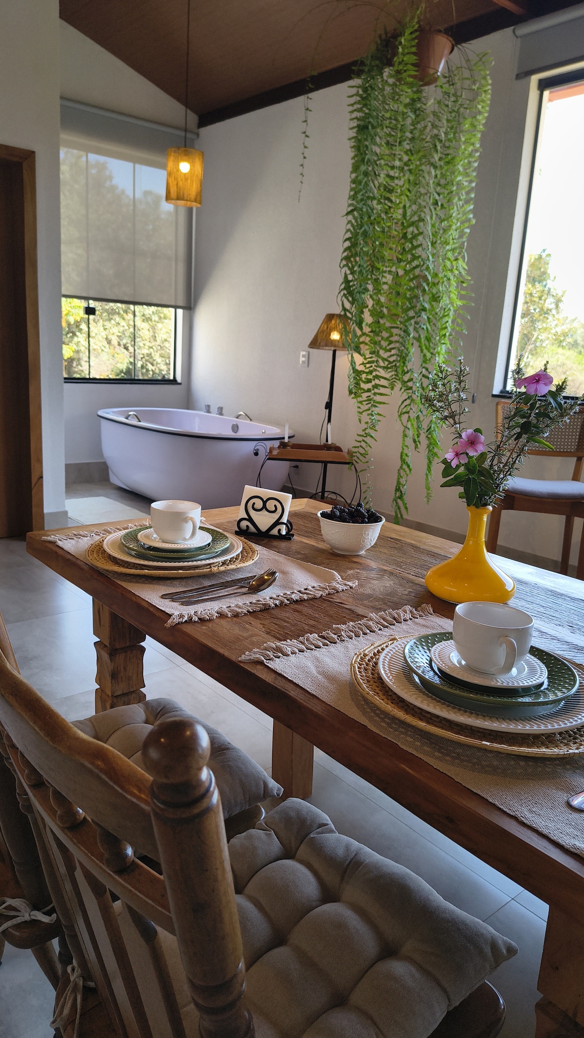 Nossa estrutura conta com uma cozinha completa, banheira de hidromassagem, cama Queen, TV, internet, banho duplo a gás, ar condicionado, rede horizontal suspensa, piscina com cascata e ducha.