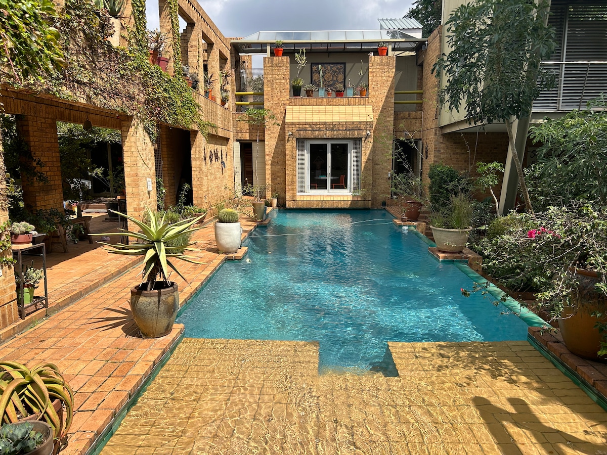 This centrally located, self catering, free-standing, magical mountainside cottage, exudes charm and a spirit of adventure. Perched on the ridge, it looks out over Johannesburg's northern suburbs and is set in a spacious garden full of botanical delights, birds and butterflies. This is a quiet, peaceful area suitable for relaxing or working from. We have a solar and battery power backup and water reservoir, so have reserves of electricity and water.