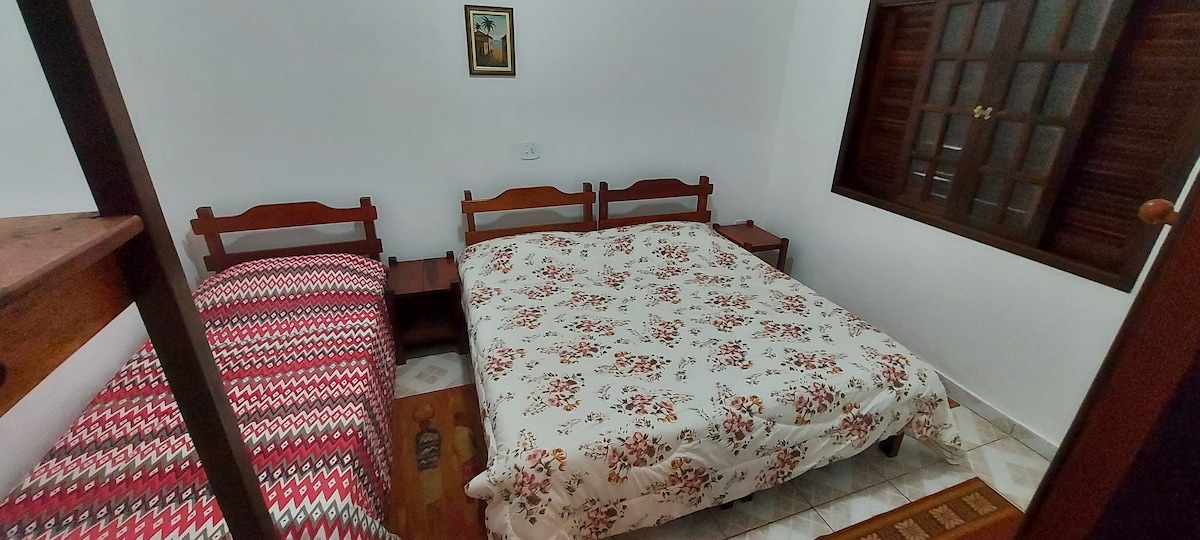 Linda casa em local seguro, arborizado, muitos pássaros e natureza exuberante. Estamos a 150 metros do Parque Aquatico Acqua Thermas e a 7 Km do centro da cidade, ótimo acesso com asfalto, 800 m Carvalho Pinto Guararema cidade turística com vários parques, praças e passeios de trem, beleza exuberante de rios e natureza Cozinha completa Lençóis, mantas e toalhas disponíveis opcionalmente valor a parte ANIMAIS DE ESTIMAÇÃO PORTE PEQUENO SOMENTE SAO ACEITOS MEDIANTE INFORMAR NA CONSULTA DE RESERVA.