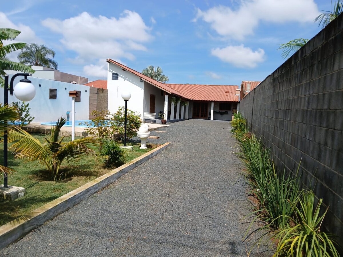 LOCAL PRÓXIMO DA CIDADE, LINDA ÁREA VERDE PRESERVADA, PISCINA , CHURRASQUEIRA, CAMPO DE FUTEBOL , MESA DE SINUCA, ÓTIMO LOCAL PARA SE DIVERTIR COM A FAMÍLIA E PASSAR UM FINAL DE SEMANA AGRADÁVEL. Casa com 4 dormitórios sendo uma suíte, todos com ventilador e tela mosquiteira, sala de estar com tv, cozinha completa, 4 banheiros, área de serviço com máquina de lavar roupas.