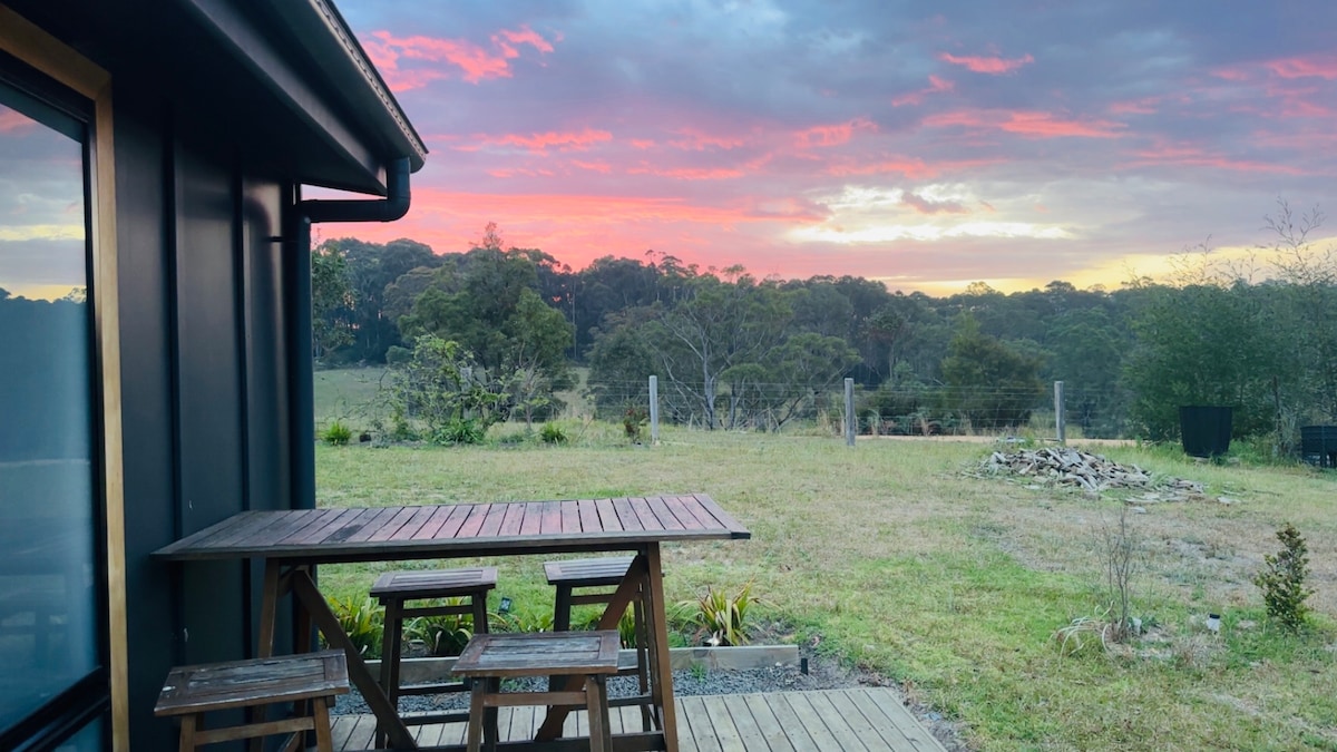 Reconnect with nature. Backing onto the state forest, this unique tiny house stay gives you the best of both worlds. The little things is situated on 3 acres overlooking a duck filled dam, kangaroos and native birds, yet just a stones throw away from town and local beaches. We are FULLY OFF GRID & ECO FRIENDLY ❤️ Complimentary Breakfast hamper enjoyed on the verandah, movie projector for rainy days & fire tub bath under the stars at night 7 VELUX skylights and King bed….. enjoy THE LITTLE THINGS