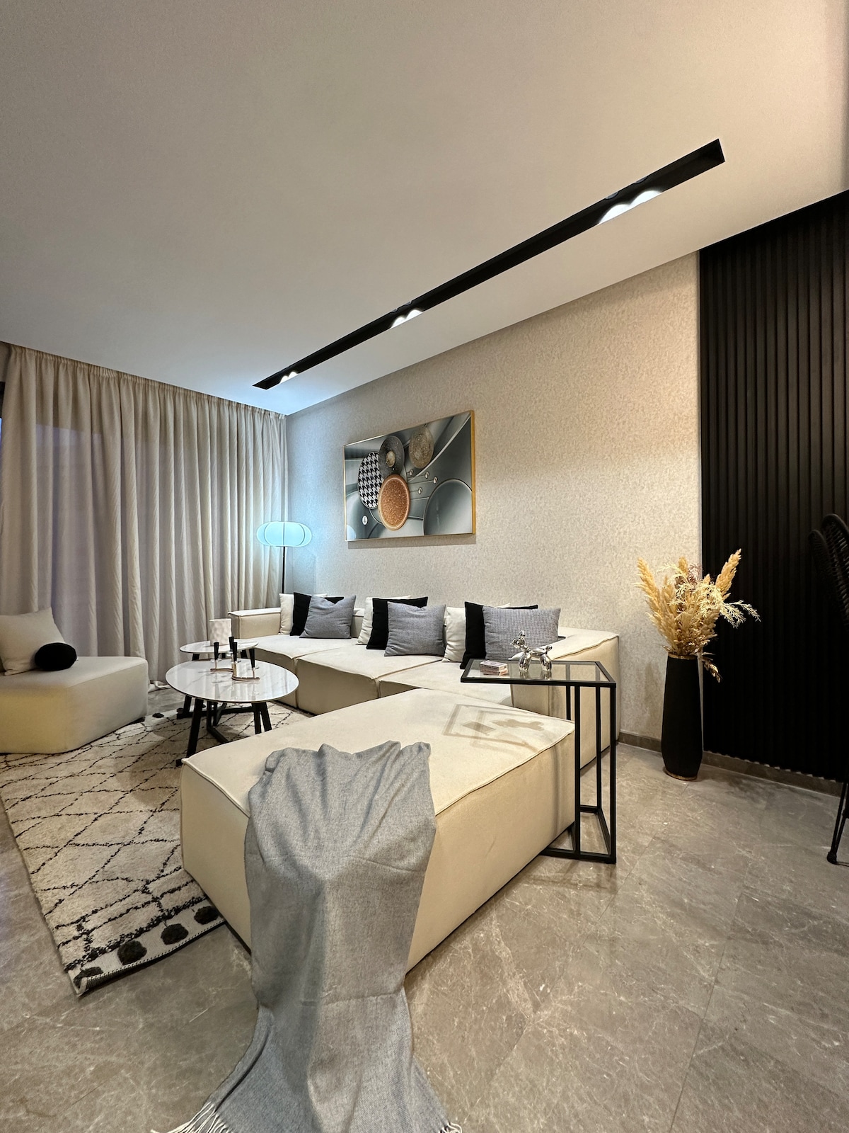 Welcome to this beautiful apartment perfectly located in the heart of Casablanca - Les Princesses. Enjoy a refined featuring a bright balcony, elegant décor, and modern amenities, ideal for a comfortable and relaxing stay. Take advantage of a fully equipped kitchen and a secure parking space, offering both convenience and peace of mind throughout your visit. A calm and contemporary retreat where every detail has been carefully considered to make your stay truly unforgettable.