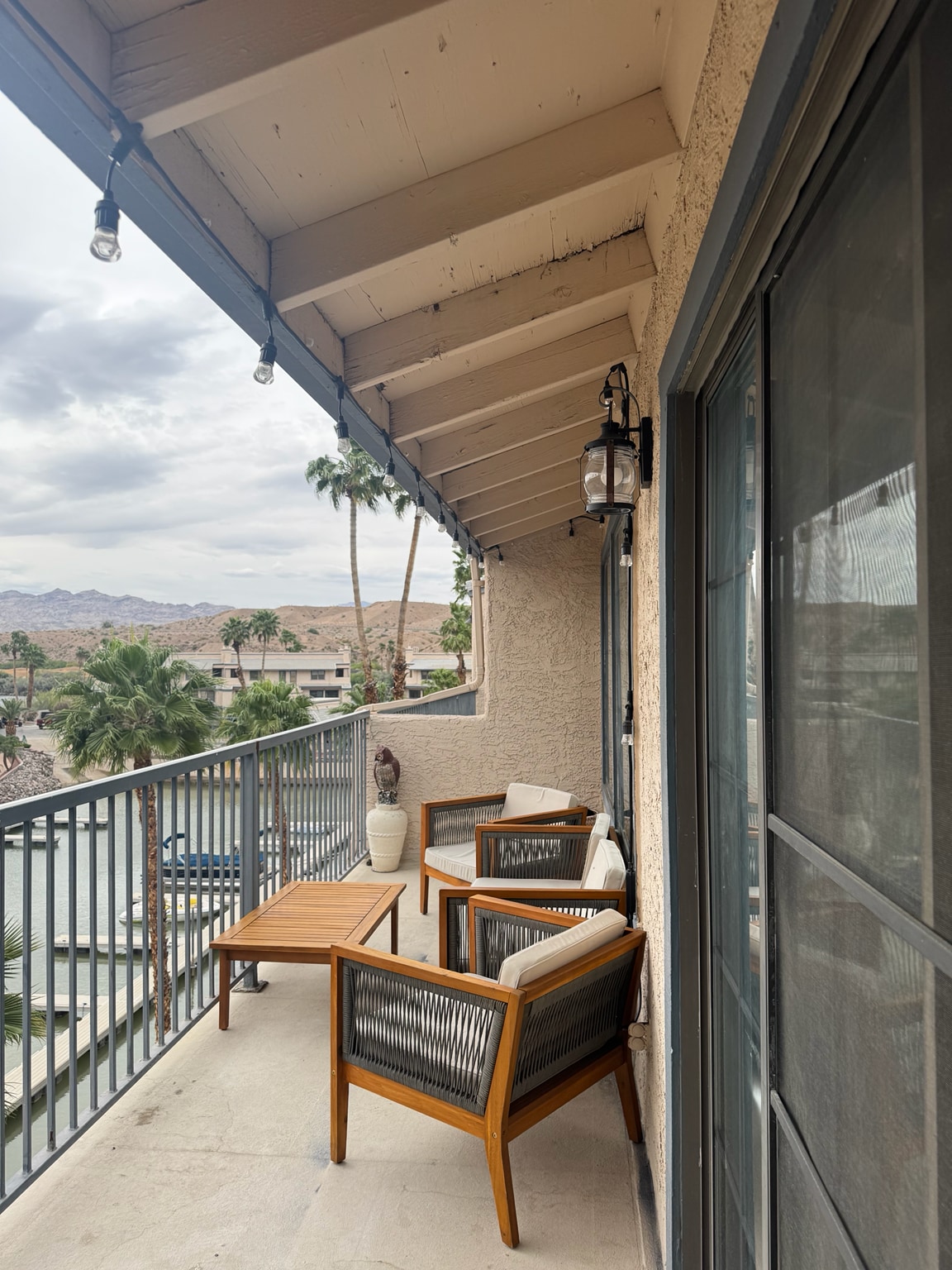 Shangri-La Riversuites is located right on the Colorado River and 4 miles to Laughlin. River Haven is a newly renovated unit with updated finishes to ensure a comfortable stay. This unit has all hard surface flooring and is not pet friendly for those with sensitivities. The Colorado River is just steps away, as is our private beach for relaxing along the river. River Haven is very clean, comfortable and will provide a great space to explore the area or should you be working remotely.