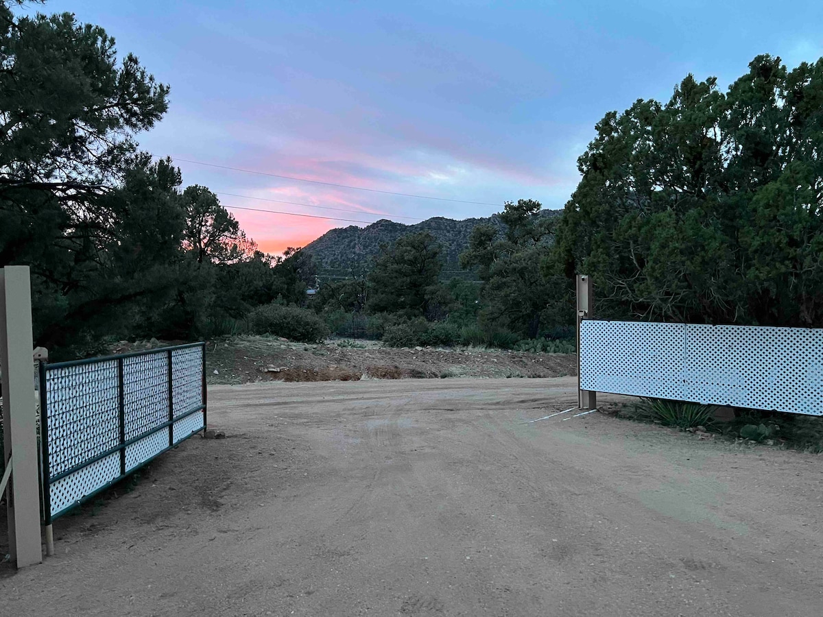 This 950 square foot bungalow - newly renovated - is set into our beautiful, peaceful ranch/meadow surroundings. It is fully equipped for self-catering with kitchen/dining area. Spacious open-space style (see photos), with large porch, a beautiful pool, hot tub, barn with hens, mini donkeys, and 2 llamas, and our two beloved Golden Retrievers. We are only 25 minutes from downtown Prescott with all its amenities, and then back home to the quiet, and amazing starry skies of Skull Valley.