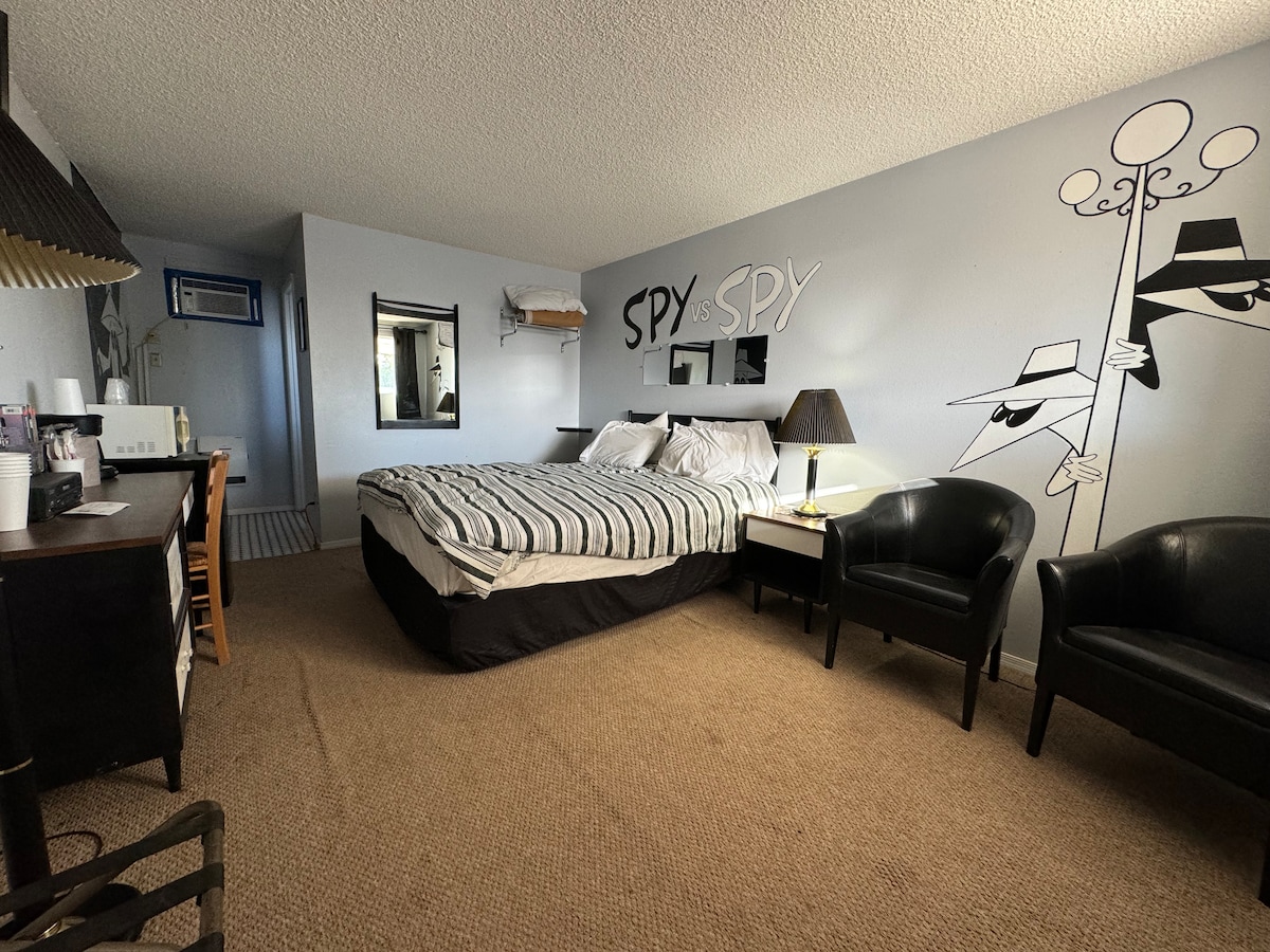 We are offering a Queen Room at The Postcard Motel. Enjoy staying on the Historic Route 66! We are a Boutique Motel located in the heart of Seligman, AZ! Make us your pit stop on your road trip adventure! Ideal spot to stay when traveling to The Grand Canyon, Grand Canyon Caverns, and Flagstaff! We are Pet-Friendly! We charge a $25 pet fee per pet. Please let our manager know upon arrival if you have brought your furry friend along for your stay.