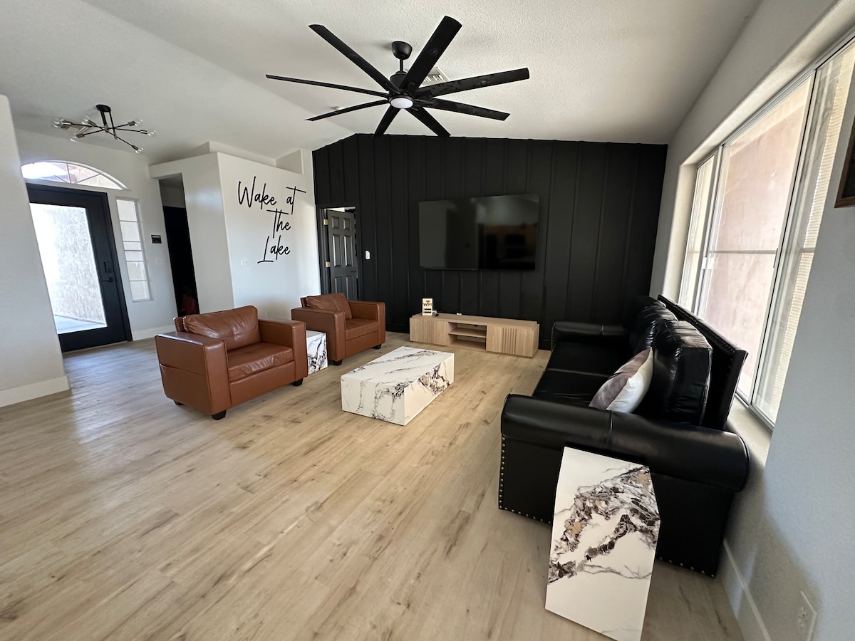 The Stairway To Heaven is a sacred get away on the California side of Havasu Lake. Our fully renovated, 3 bed 3 bath, water front property includes a private beach plus all the comforts of home. With a fully stocked kitchen, washer/dryer, crib and high chair, our home is comfortably equipped for a family retreat. Strict No Pet Rule