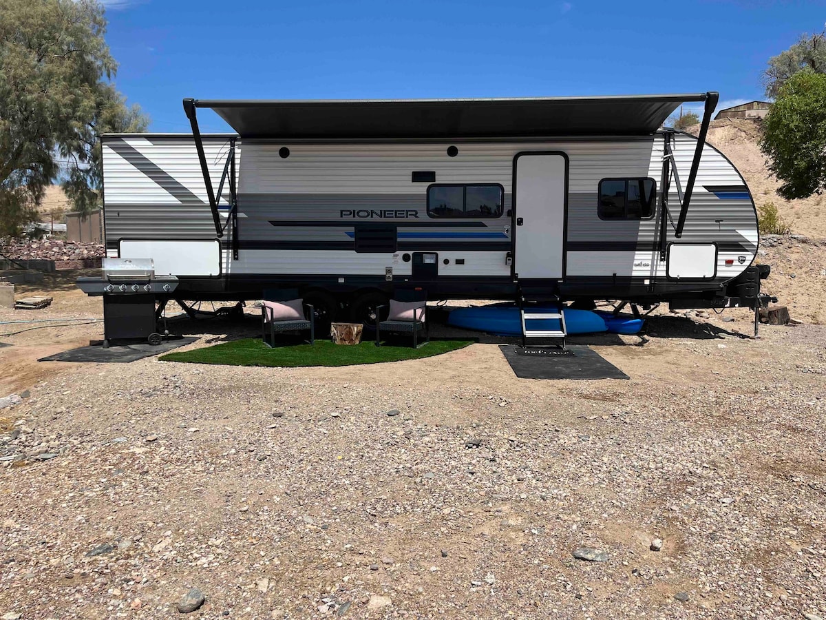 Keep it simple at this peaceful and centrally located place. You will be 1 minute walk to the pool and spa, clubhouse beach and fire pits, a bbq is close by for your use. Ideal for a out of town worker or just someone on vacation. Has out side pull out kitchen as well. 2 AC units so you can stay cool in the summer. Fully contained. We are a drug free and gun free park.