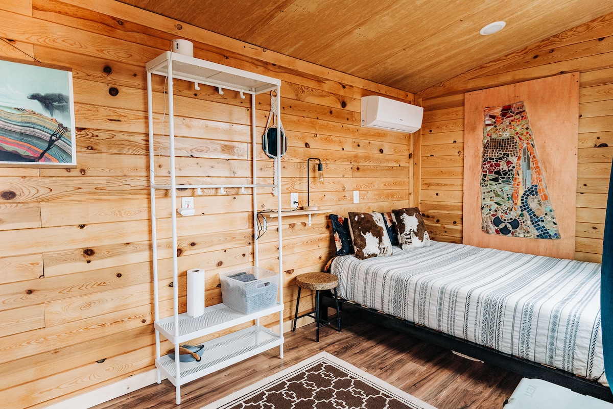 The Nest is a cozy queen bed + full bath tiny home. Fully equipped with a kitchenette, microwave, heat/AC. Excellent views. Very quiet and peaceful. Sleeping up in the loft will make you feel like you are a baby bird perched in a nest. Working on a book? Perfect desk and chair to look at the mountains and contemplate your next chapter. Need an escape from the hustle and bustle of the city? Trails right across the street with petroglyphs and shaman stones everywhere.
