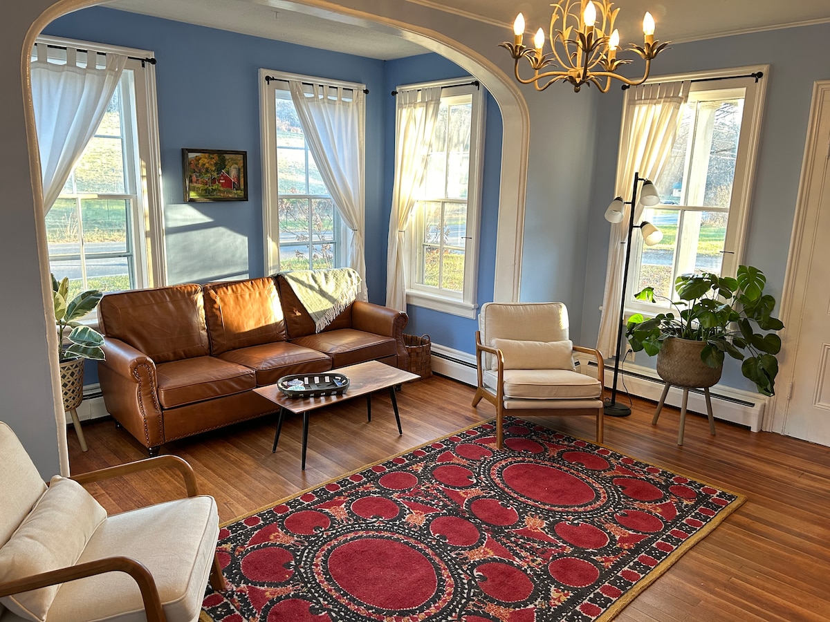 Enjoys luxurious Get away to lovely Sharon, CT, just 2 hours from NYC/3 hours from Boston. Enjoy a chill vibe, garden and mountain views, and fresh organic eggs from our lovely flock of hens. We’ve created a luxurious and spacious modern feel, in a bucolic farmland setting. All newly refurbished with a luxurious modern bath with rain shower and fabulous marble stone work. Coyuchi bedding, soft organic cotton linens, and gourmet kitchen!