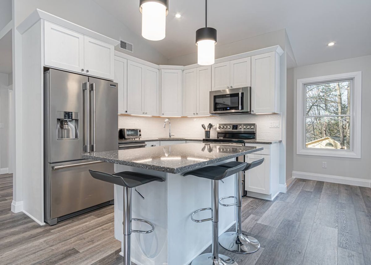 Forget your worries in this space! 4 season of beauty, relaxation & fun in luxurious accommodations. Lakefront access to pristine, quiet Galway Lake, 20 minutes to downtown Saratoga and at the foothills of the Adirondacks. Swimming/canoeing right from your own beachfront. Relax the day away on your dock, beachfront or deck overlooking the lake & end your day at the firepit with spectacular sunsets. Newly renovated, gourmet kitchen with a completely open floor plan.