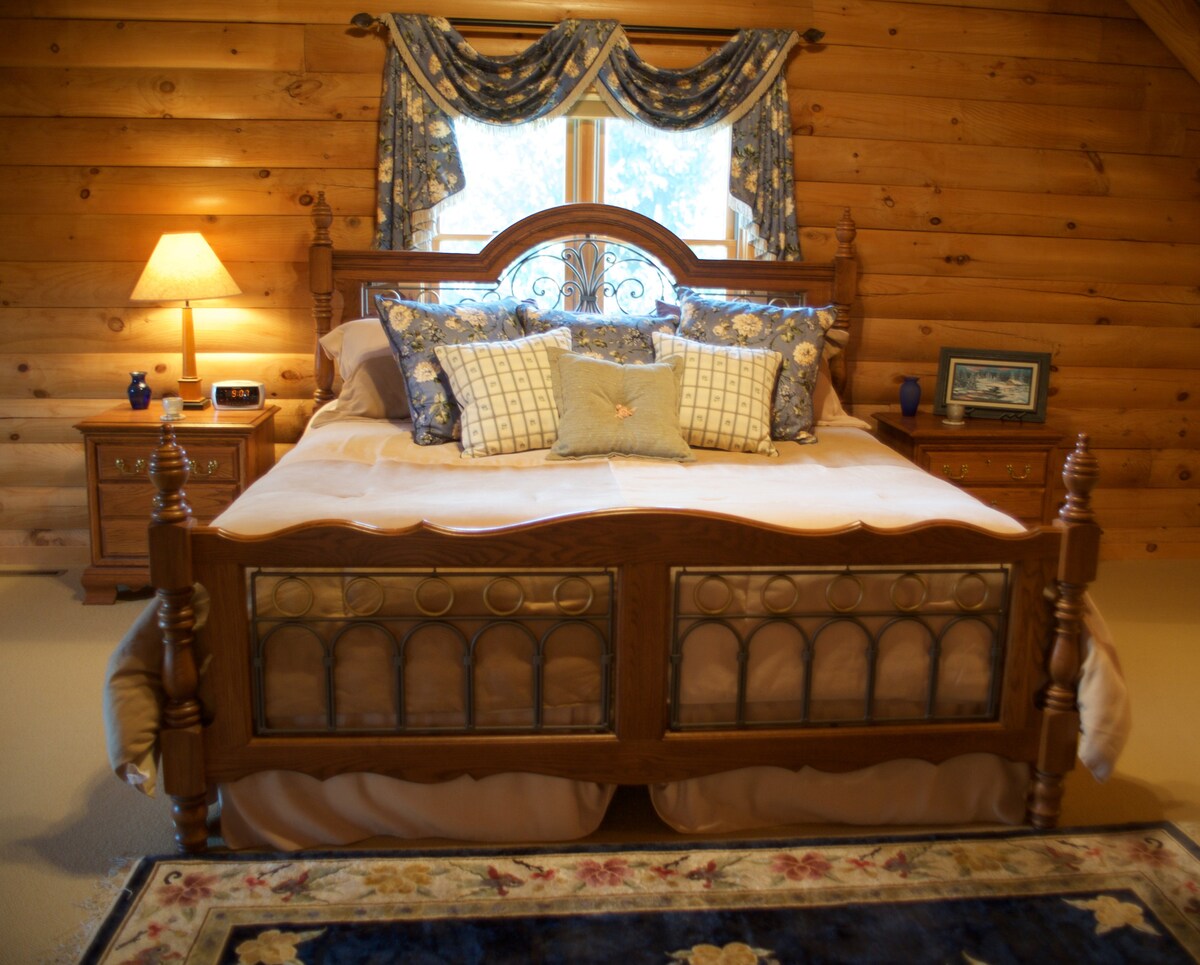 Gorgeous log home set on 82 acres just 3 miles from Saratoga Lake, and 10 miles from downtown Saratoga Springs. Gorgeous fall colors, walking trails, and outdoor firepit. Escape, relax in this quiet, private piece of paradise. Stunning views of Equinox Mountain in VT, breathtaking sunrises and sunsets. Guest bedrooms are very large, with lofted high beam ceilings. The blue room has a king size bed and sitting area. Massage Therapy available onsite, to complete your dream get away!