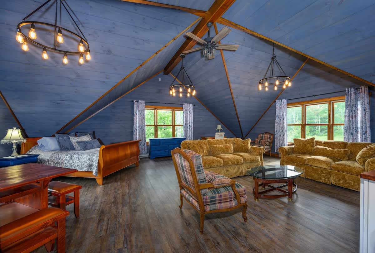 Kick back and relax in this calm, stylish space, conveniently located between Saratoga and Glens Falls. Our cozy guest house features a private bedroom with a queen sized bed and attached bath, as well as a loft with a twin sized futon, a queen pullout couch, and space for yoga, reading, or relaxation. The petite full kitchen is stocked with the basics for your convenience. Plentiful free parking and views of a beautiful private farm. Easy access to Lake George and the Adirondacks!