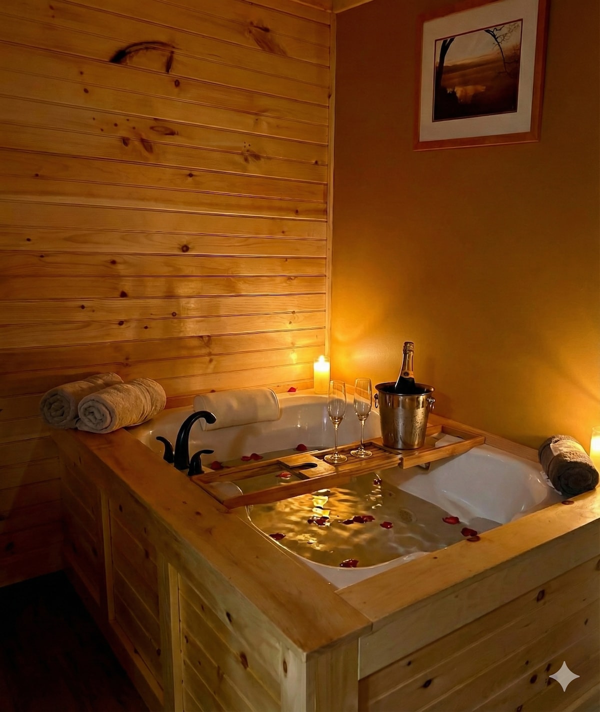 Slip away to your private Adirondack retreat. This warm and wood-lined King Studio at the Lake Haven blends rustic wood finishes with a cozy Jacuzzi tub for two, plus a kitchenette for breakfast-in-bed mornings. Soak beneath soft lighting in your private Jacuzzi tub, sip coffee from your kitchenette, and unwind in Adirondack comfort just steps from dining and the lake. Perfect for couples who want comfort, charm, and walkable access to Lake George Village — without resort-level prices.