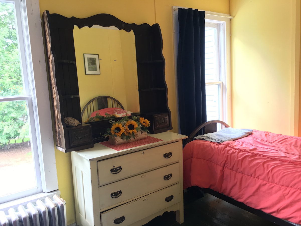 Fully furnished, private bedroom with queen bed and private bathroom in the lovely 1830 Beekman House located in the Historic District of Middleburgh, New York. Reservation also includes exclusive and private access to one of the downstairs parlors where you will find breakfast each morning prepared personally for you. (Assigned parlor pictured in photos). Amenities include parking, WIFI service, Smart TV with access to Netflix, and accesses to the 3 acres grounds.