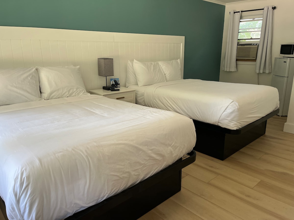 Enjoy your getaway at the newly renovated Country Corner Motel. This room offers 2 queen beds, a full bathroom, a mini fridge, a coffee maker, a smart tv, and complementary Wi-Fi. We are located right on the ATV/snowmobiling trail and have plently of parking on premises for your trucks and trailers.