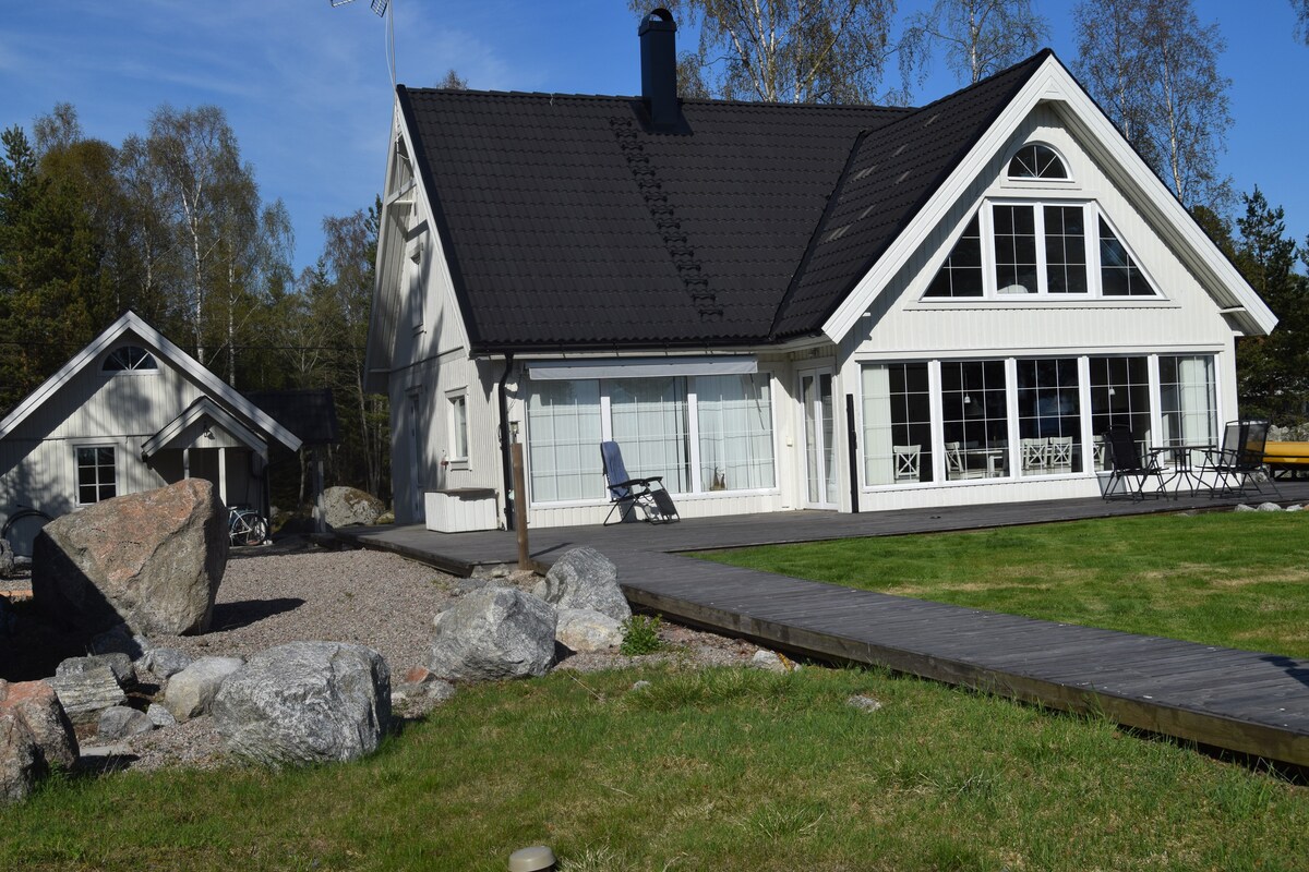 Paradiset vid havet. Här finns lugnet, lyxen och naturen. Bastu och badtunna med havsutsikt samt glampingtält under varmare månader. Bada, ta en bryggdrink, fiska och läs en bok. Braskamin, kaffemaskin, Wi-Fi, högtalare, smart-tv i v-rum och två sovrum. Här finns både gasolgrill och Muurikka. Två barnstolar, spjälsäng, resesäng, studsmatta och leksaker. Ta en tur med kanadensaren, paddleboarden eller traillöp i skogen mot klipporna. Alla årstider har sin charm och stora familjer får plats!