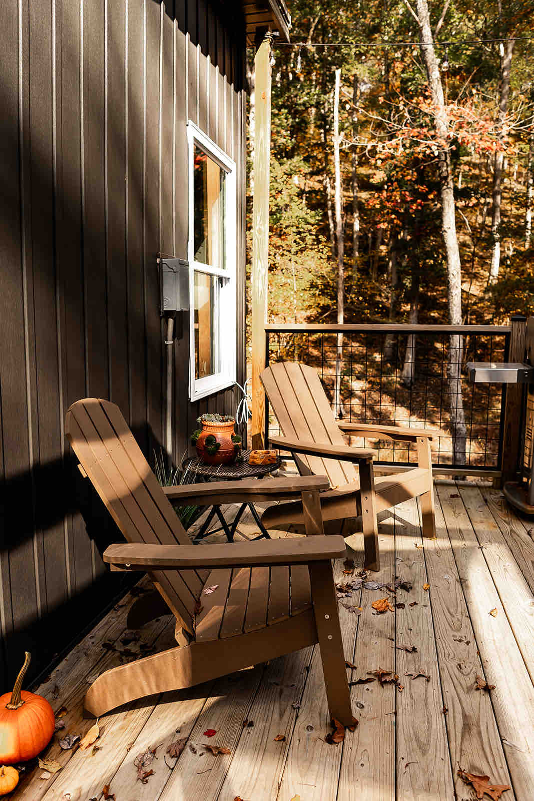 Outdoor Areas - The back patio is likely one of the more popular hangout areas of the house. It features a large, four-burner grill. It also includes patio chairs & a table. It gives a great view of an open space known for deer sightings. The side patio features a table and chair for two. It's the perfect place to enjoy a morning cup of coffee. There is also a campfire area on the rear side of the house, for late evening smores!