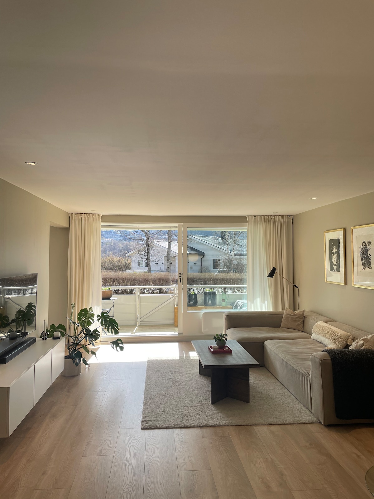 This beautiful apartment has with its big modern windows a lot of natural light all day long. The area and neighborhood are really quiet. It is located close to NTNU, the river Nidelva, the lake Theisendammen, the train station, and several bus stops. It is also located ten minutes away from the center of Trondheim. Included you have free parking. The apartment have a security door and is located at the ground floor (high first floor) of a really modern and calm building.