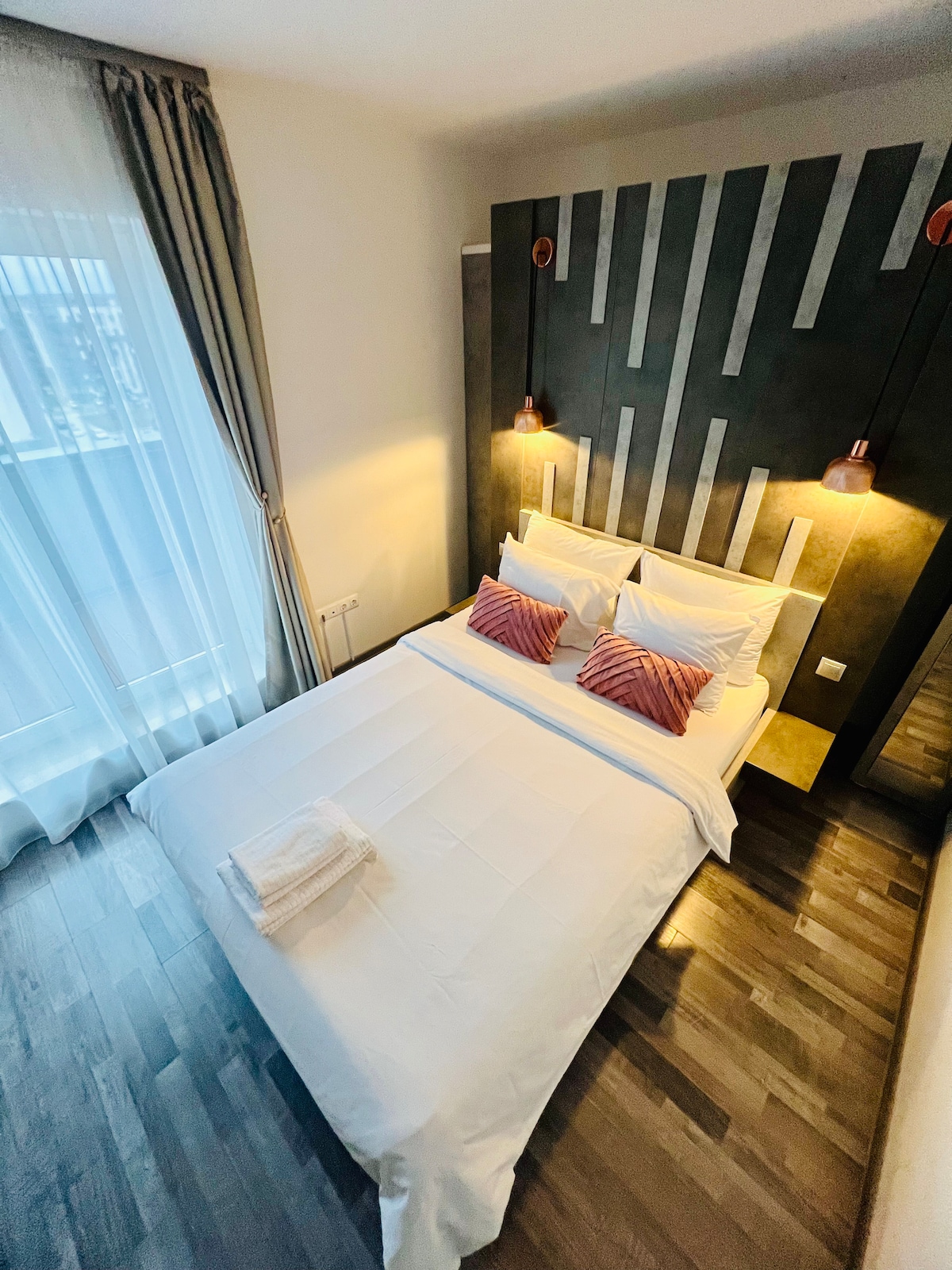 A uniquely and carefully designed, this apartment perfectly combines coziness with stunning Scandinavian accents. Situated in a new residential neighborhood, we go above and beyond to ensure a unique experience for our guests. Our home can accommodate up to 4 people and has its parking lot. The standout feature of this penthouse is the spacious terrace with a jacuzzi and a panoramic view over the mountains, being ideal for couples, business travelers, solo adventurers, or families (with kids).