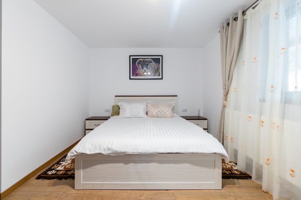 Stilul minimalist, definit de notele caracteristice ambientale nord vestice, imbinate cu mobilierul de lemn masiv, te invita sa iti petreci sejurul intr-un spatiu scaldat in lumina, definit de o atmosfera calma si confort.