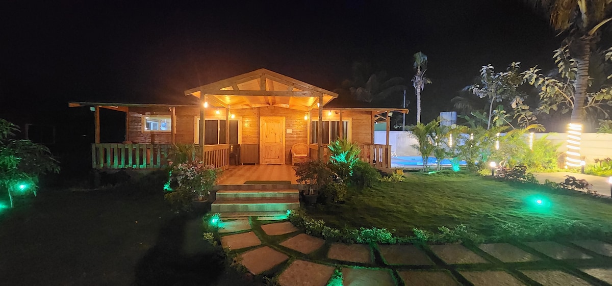 Experience the ECO friendly wooden cottage at KUKU FARM STAY . Which offers you Privacy Security Comfort. private pool , Food in order . In house kitchen . indoor out door game , music system with karaoke . Projector movie under the sky . Dedicated care taker during your stay . wake up to birdsong breathe fresh air and experience the tranquility that only rural life can offer .Whether you,re seeking a family retreat ,a romantic getaway ,or a peaceful escape from city life.