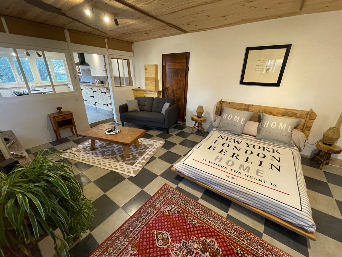 Bienvenue dans ce loft unique, aménagé dans un moulin et son ancienne boulangerie avec son four à pain d’origine, préservant tout son charme d’antan. Ce lieu unique marie authenticité et confort moderne, offrant une parenthèse chaleureuse et ressourçante. Niché en pleine nature, il constitue un havre de paix idéal pour se ressourcer. À l’extérieur, vous pourrez profiter de la rivière naturelle ainsi que d’un cadre verdoyant et apaisant, parfait pour un moment de détente en toute sérénité.