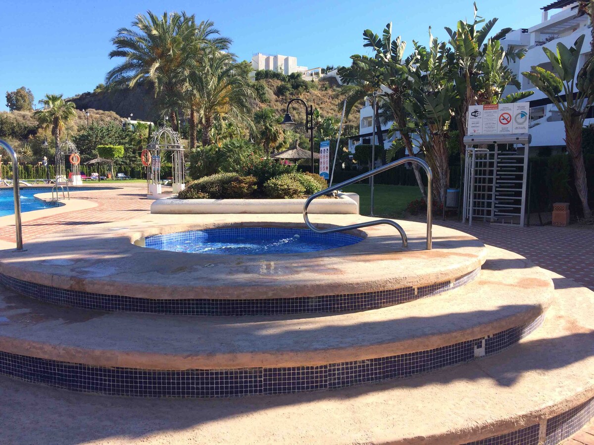 Acogedor apartamento situado en pleno corazón de Mojácar Playa. Si buscas tranquilidad, la tendrás en el precioso Complejo SPIRIT OF MOJÁCAR, pero además, podrás disfrutar de una extensa oferta de restaurantes, heladerías y chiringuitos -con música en directo- ubicados en el paseo marítimo a tan solo 7 minutos a pie.