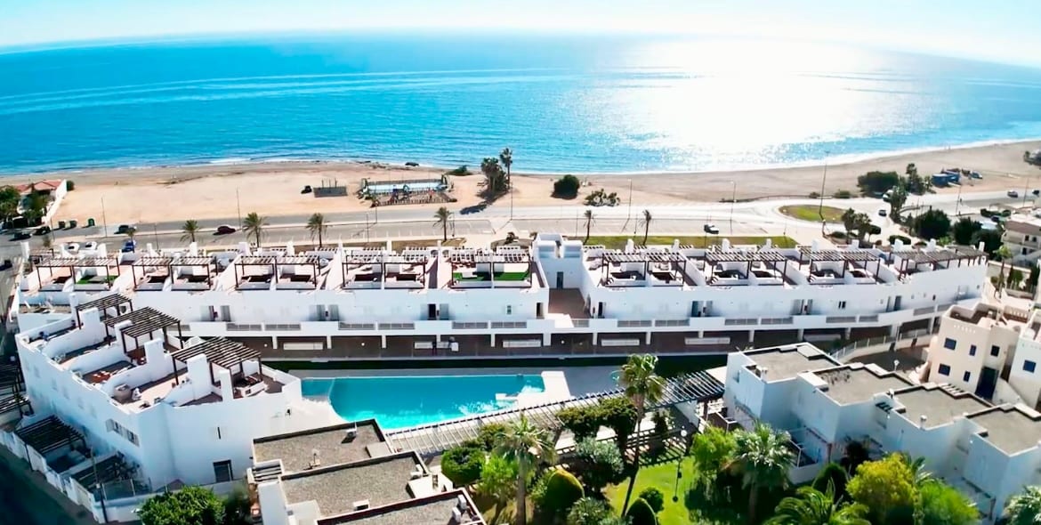 Apartamento bajo con porche en primera línea de playa en Puerto Rey, Almeria. Dos habitaciones, salón comedor, cocina con barra, baño, lavadero y trastero. Aire acondicionado, sofá cama, wifi, smart TV de 55" (Netflix y Amaon Prime) lavadora y secadora. La cocina está equipada con microondas, lavavajillas y menaje completo. La habitación principal consta de cama de matrimonio de 160 y la secundaria de dos camas de 90, ambas con armarios. Parcela de parking privado exterior. Piscina comunitaria.