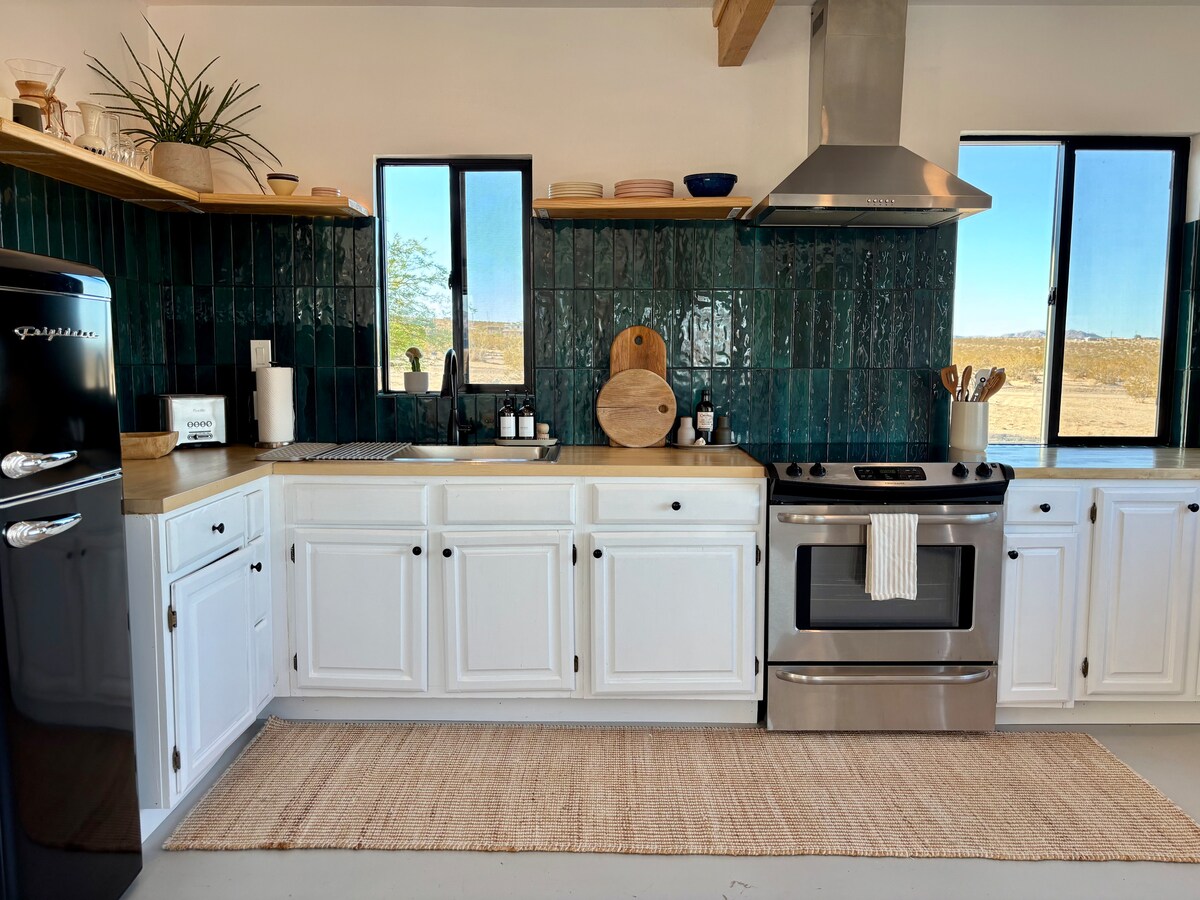 A private high-desert sanctuary designed for deep rest, reconnection, and slow mornings beneath wide open Joshua Tree skies. Soak in the cedar hot tub under the stars, plunge cold at sunrise, and unwind by the fire as the desert goes quiet around you. Thoughtfully designed with bespoke decor, linen sheets, handcrafted ceramics, curated sound, and fast Wi-Fi. Quiet, peaceful, and intentionally crafted for a rare, restorative desert escape. Reconnect with nature, with yourself, or someone you love
