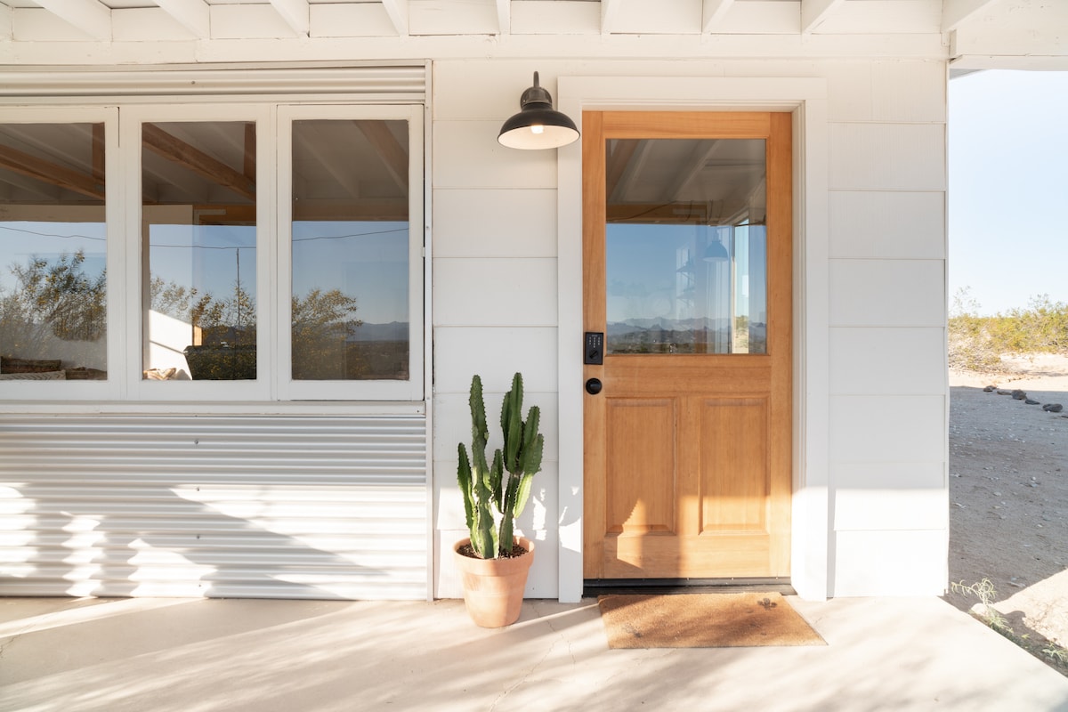 A private high-desert sanctuary designed for deep rest, reconnection, and slow mornings beneath wide open Joshua Tree skies. Soak in the cedar hot tub under the stars, plunge cold at sunrise, and unwind by the fire as the desert goes quiet around you. Thoughtfully designed with bespoke decor, linen sheets, handcrafted ceramics, curated sound, and fast Wi-Fi. Quiet, peaceful, and intentionally crafted for a rare, restorative desert escape. Reconnect with nature, with yourself, or someone you love
