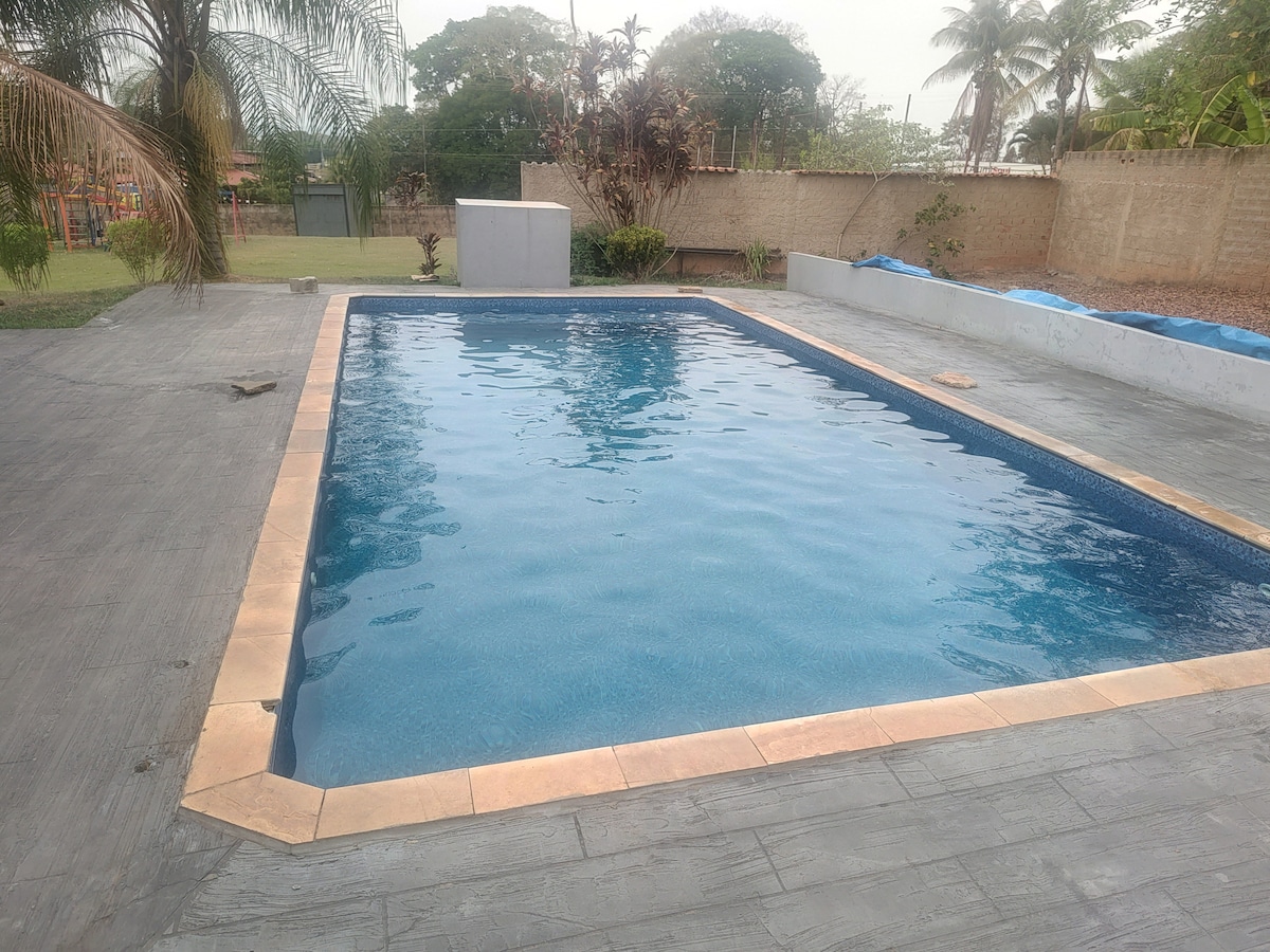 Perfeito para curtir seu tempo com a família ou amigos. Local tranquilo, com área externa extensa, piscina grande, e área interna aconchegante com wi-fi e ar condicionado.