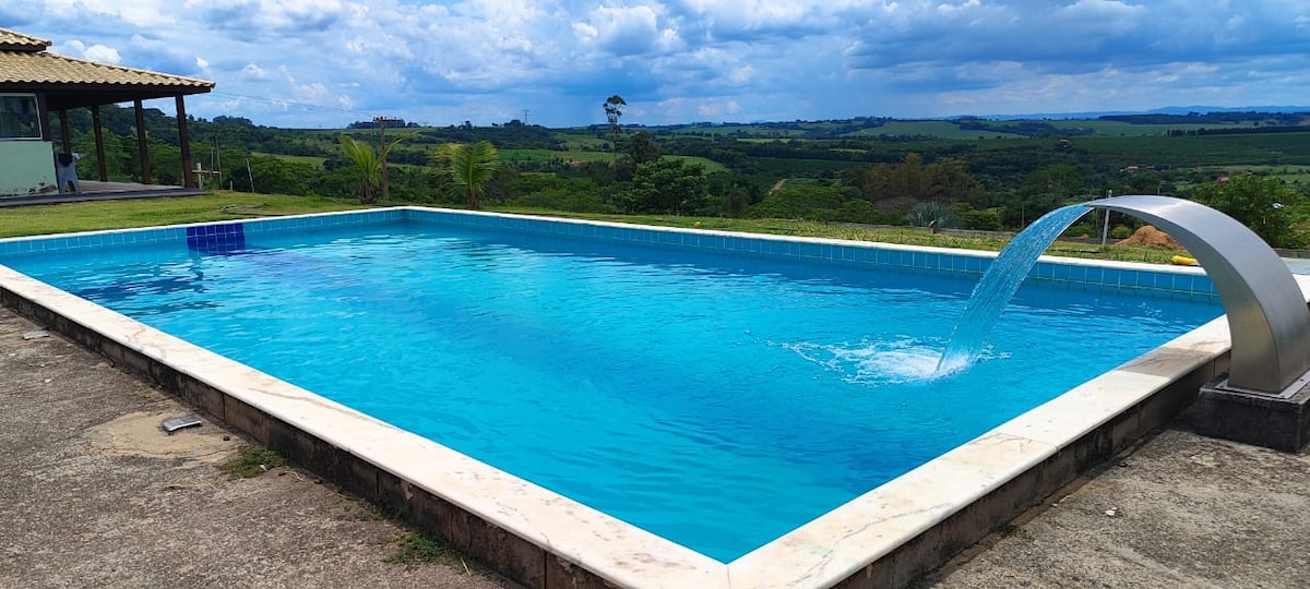 Bem-vindo à nossa chácara aconchegante. Com 7 quartos e 6 banheiros, temos espaço para todos se acomodarem confortavelmente. Prepare refeições nas 2 cozinhas equipadas ou na cozinha gourmet para experiências culinárias especiais. Desfrute de momentos agradáveis nas 2 salas ou no salão de jogos com mesa de ping-pong. Relaxe na piscina ou à beira da lareira nas noites frias. E não se esqueça de explorar nosso exuberante pomar de frutas. Venha viver momentos inesquecíveis aqui!
