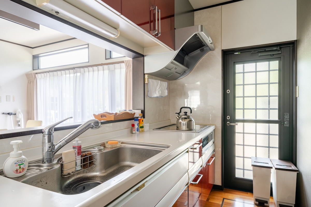開幕特惠、週特惠、月特惠等你來拿 這是一棟經過翻修的老房子。我們配備了各種電器和便利設施,確保您入住舒適。但如果您追求的是現代化的飯店式設施,或對舊建築感到不適應,請不要選擇這裡。 選擇這棟房子的5個理由 提供日式和西式兩種房型,您可以根據自己的喜好和需求選擇最合適的房間。 步行即可到達各種便利商店(便利商店、藥妝店、超市、咖啡館等)。 步行即可到達傳統的日式商店街,體驗道地的日式生活。 步行即可到達山川大海,是散步休閒的好去處。 配備齊全,包括無線網路、空調和可供烹飪的廚房。 推薦給家庭、團體及長期入住 可整租,享有私人空間。 寬敞的五房一廳(1119平方英尺)空間,讓每個人都能放鬆身心。 最多可容納14人。 免費高速Wi-Fi,方便多位賓客同時使用。 一起在50吋大螢幕上觀看電影或運動賽事。 配備齊全的廚房,包括獨立洗衣機和烹飪用具。