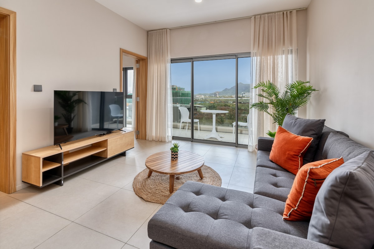Welcome to your home away from home! This stylish and cozy apartment offers a contemporary design, perfect for relaxing or working remotely. Featuring a bright living space, a fully equipped dining area, and sleek track lighting for a warm ambiance. The bedroom is designed for restful nights, and the bathroom is elegantly fitted with modern amenities. Located in the heart of Ebene City, this space is ideal for both leisure and business travelers. Unwind in style and make your stay unforgettable!